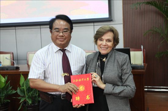 上午9:30,Sylvia Earle 博士首先从公司黄硕琳副董事长手中接过聘书。随后,她给公司师生们作了“可持续海洋:远景与现实”的学术报告,回答了师生们的很多提问。中午黄硕琳副董事长代表海洋大学宴请了Sylvia Earle 博士。下午,Sylvia Earle 博士与深渊科学技术中心的研究人员座谈,对中心的发展思路和中心完成的11000米载人潜水器的概念设计给出了她的咨询意见。这次来校访问得到了上海电视台国际频道(ICS)的重视,他们派人对Sylvia Earle 博士的全天活动作了记录拍摄,并对她作了专访。