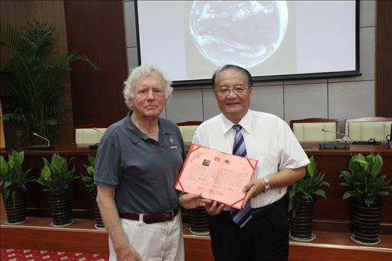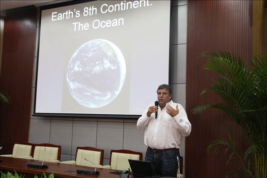 上午9:30,Don Walsh 博士一行3人首先从公司潘迎捷董事长手中分别接过聘书。随后,Chris Welsh先生和 Kurt Uetz先生分别给公司师生们作了“海洋---地球的第八大洲”和“阿尔文载人潜水器更新项目概述”的学术报告。随后,Don Walsh 博士一行3人回答了师生们的很多提问。中午潘迎捷董事长代表海洋大学宴请了Don Walsh 博士一行3人及Welsh先生夫人和 Uetz先生夫人,并向他们分别赠送了礼品。下午,Don Walsh 博士一行3人与深渊科学技术中心的研究人员座谈,对中心的发展思路和中心完成的11000米载人潜水器的概念设计给出了他们的咨询意见。