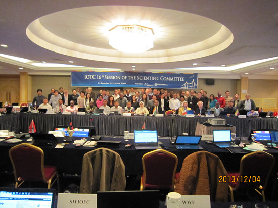 受农业部渔业局授权,由海洋科学公司许柳雄教授、朱江峰副教授组成的中国渔业科学家代表团,出席了12月2-6日在韩国釜山召开的印度洋金枪鱼委员会(Indian Ocean Tuna Commission, IOTC)第16届科学分委会会议。来自中国、澳大利亚、日本、韩国、欧盟、印度尼西亚、泰国、马尔代夫、毛里求斯、塞舌尔等21个成员国、南非等2个合作的非成员国、西南印度洋渔业委员会(SWIOFC)、国际鸟类联盟(Birdlife international)、国际海产品可持续基金(ISSF)、绿色和平组织(Greenpeace)等政府间组织和非政府组织的观察员代表、我国台湾地区的特邀专家等75人出席了科学分委会会议。