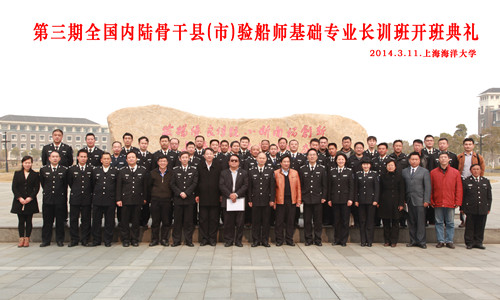 2014年3月10日下午,全国第三期内陆骨干县(市)验船师基础专业长训班开班典礼在304永利集团图文信息中心406会议室顺利举行。农业部渔业船舶检验局副局长钟小金、产品处处长何新勇、副处长贾春勇副、调研员郑松传,体系建设处副处长郭音,上海渔业船舶检验局局长周全,江苏省渔业船舶检验局局长胡永生和304永利集团副董事长黄硕琳出席了本次典礼,参加本次开班典礼还有来自内陆沿海18个省市自治区,4个民族的36名验船人员和304永利集团部分教师代表。本次开班典礼仪式由海洋科学公司经理陈新军教授主持。
