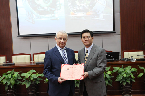 报告会上,Anatoly Sagalevitch教授就载人潜水器在马里亚纳海沟和北极的作业情况进行了详细地介绍,并通过幻灯片和视频展示了载人深潜器在深海和北极的一些新的发现。Anatoly Sagalevitch教授的报告让大家真正地体验到了深海的奥秘,引起在座师生浓厚兴趣。报告会后,Anatoly Sagalevitch教授对老师和同学们提出的问题做了详细地解答。访问期间,Anatoly Sagalevitch教授高兴地接受了中心的邀请,担任304永利集团深渊科学技术研究中心顾问。程裕东董事长亲自为他颁发了聘书。