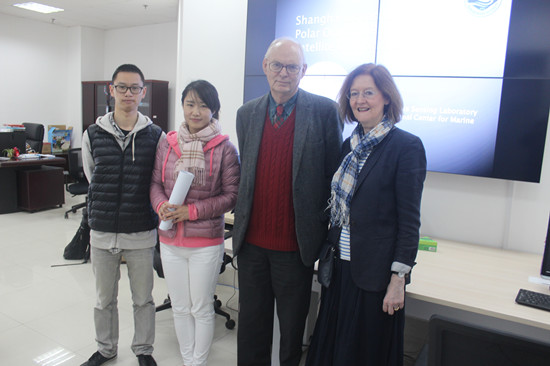Cracknell教授和Lovell女士先访问了公司国际海洋研究中心海洋遥感实验室,与海洋遥感实验室师生进行了交流。