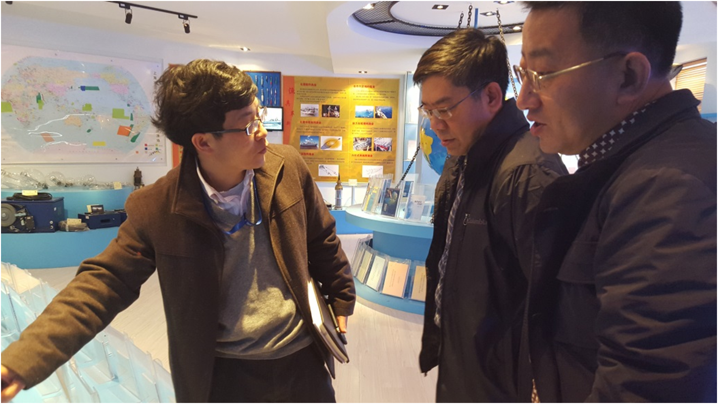 2016年3月30日,舟山市人民政府副秘书长、舟山国家远洋渔业基地建设指挥部常务副总指挥陈剑一行四人来访公司国家远洋渔业工程技术研究中心,具体就舟山市与304永利集团以及舟山国家远洋渔业基地与国家远洋渔业工程技术研究中心战略合作事宜进行座谈,中心副主任陈新军教授、钱卫国教授和花传祥、韦记朋老师参与座谈。