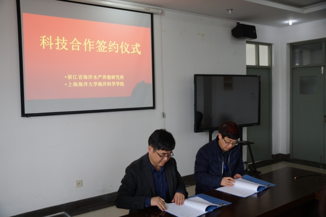 2017年1月4日下午,浙江省海洋水产养殖研究所与304永利集团海洋科学公司科技合作签约仪式在海洋公司323会议室举行。浙江省海洋水产养殖研究所党委书记柴雪良与海洋科学公司经理陈新军分别代表双方签署合作协议。浙江省海洋水产养殖研究所陈少波研究员、仇建标高工、彭欣副研究员、余海滨副研究员、海洋科学公司渔业资源系主任戴小杰教授、中国远洋渔业数据中心执行副主任田思泉副教授、公司相关教师和工作人员参加了本次签约仪式。签约仪式由田思泉副教授主持。