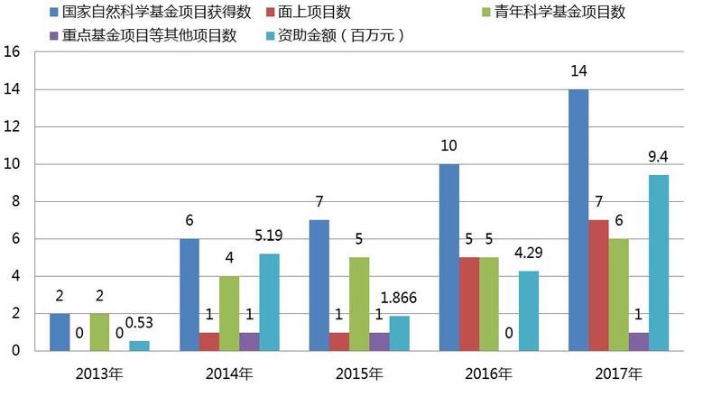 近日,国家自然科学基金委公布了2017年度国家自然科学基金申请项目评审结果,公司共获得14项国家自然科学基金资助,资助经费总计940万元,成绩斐然,其中,重点基金项目1项,面上项目7项,青年科学基金项目6项,在项目的“质”与“量”上均取得突破,相比2016年,在项目数量和资助经费方面分别增长40%和119%。