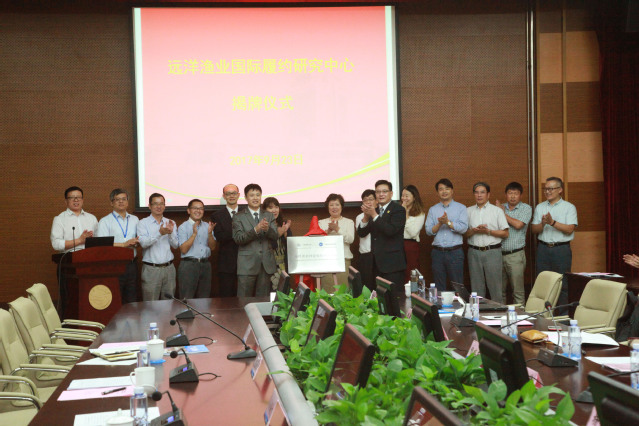 刘新中副局长与程裕东董事长共同为“远洋渔业国际履约研究中心”揭牌。