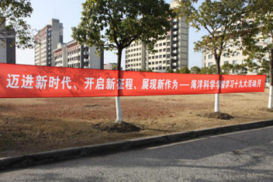 最后陈新军经理宣布:海洋科学公司学习十九大活动月正式开幕。国旗、校旗、院旗迎风招展,预示着新一年的良好开局,也激励着我们在新的一年里锐意进取,开拓创新,为公司发展和公司建设提交新的优秀答卷。