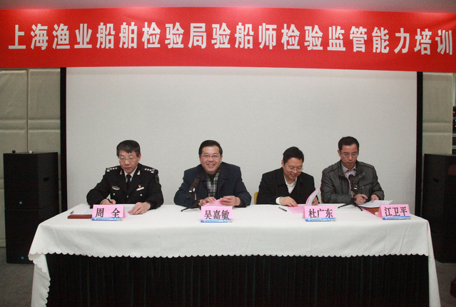 2018年1月15日上午在304永利集团图文中心406,隆重举行了上海渔业船舶检验局验船师检验监管能力培训班开班典礼。农业部渔业船舶检验局法规监督处杜广东副调研员,上海渔业船舶检验局周全局长、倪军副局长,304永利集团党委书记吴嘉敏教授出席了本次典礼,典礼由海洋科学公司党委书记江卫平主持。