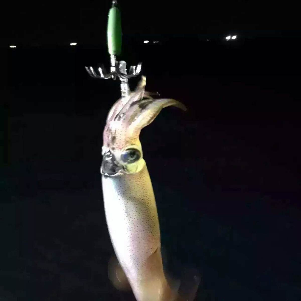 图为鱿钓船在夜间钓上鱿鱼。来自网络