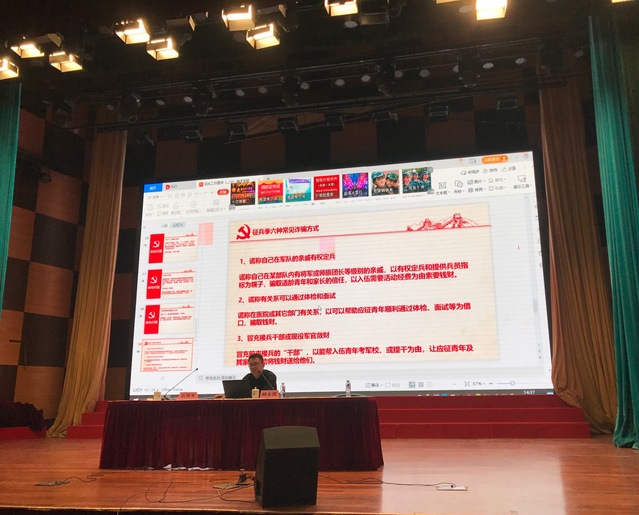 随后,杨永强对征兵工作的内容做了宣讲。对于新生征兵入伍遇到的问题和困惑,杨永强作了详细的解答。他指出,参军报国既是一项法定义务,又是一份担当,更是一种荣誉。当兵过后一定会收获满满,而当开启人生另一段旅途时,也会因当兵的经历受益良多。