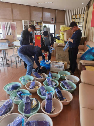 在前期储备了洗漱包和折叠椅等物资基础上,为进一步为留校教职工老师生活提供便利,公司当天紧急采购了脸盆、衣架、拖鞋等生活物资,并于当天予以了发放,确保教职工在校期间工作生活顺利。