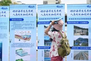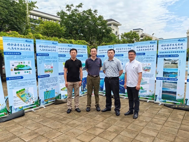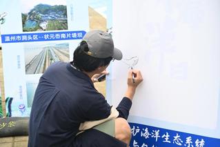 活动现场还陈设了海洋日主题宣传展板和签字展板。精心设计的宣传展板向师生们展示了海湾与海口生态系统、红树林生态系统、盐沼生态系统、海草床生态系统、海藻场生态系统、珊瑚礁生态系统、牡蛎礁生态系统、深海热液区生态系统、冷泉生态系统、冷水珊瑚林生态系统、海山生态系统、深渊带生态系统、极地生态系统等典型海洋生态系统的美丽与脆弱。同时展示了温州洞头区下东沙渔港、东岙沙滩、凸垄整治、状元岙南片堤坝等东海区海洋生态修复典型案例。师生们每每行至此处,都不由地驻足观看、探讨,不仅了解了海洋生态系统的重要性,还认识到个人行为对海洋环境的影响。