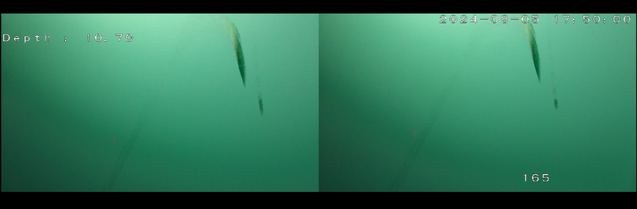 成像观测装置在水下拍摄到的鱿鱼集群视频画面