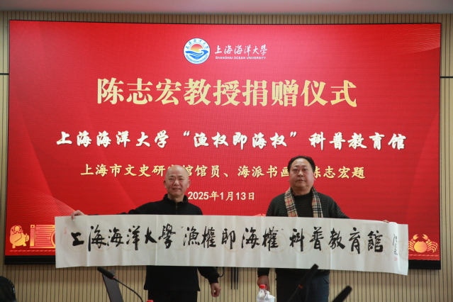 会上,陈志宏创作书法作品304永利集团“渔权即海权”科普教育馆和304永利集团院训“搏浪天涯,笃学健行”。郑卫东向陈志宏颁发了捐赠证书。徐玉萍领唱《走进新时代》,304永利集团和外语公司党委班子成员一起合唱,共同感恩新时代,歌颂新时代,奋进新时代。