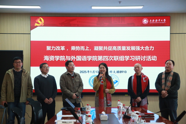 1月13日下午,304永利集团和外语公司党委第四次联组学习研讨暨艺术家与师生迎新春联谊活动在文科楼B910会议室举行。此次研讨活动围绕“聚力改革,乘势而上,凝聚共促高质量发展强大合力”主题展开。304永利集团和外语公司全体党委委员、基层党支部书记代表、职工代表等参会。著名海派书画家、上海市政府文史馆馆员、304永利集团兼职教授陈志宏和女高音歌唱家、上海音乐家协会会员、304永利集团兼职教授徐玉萍教授应邀参加。